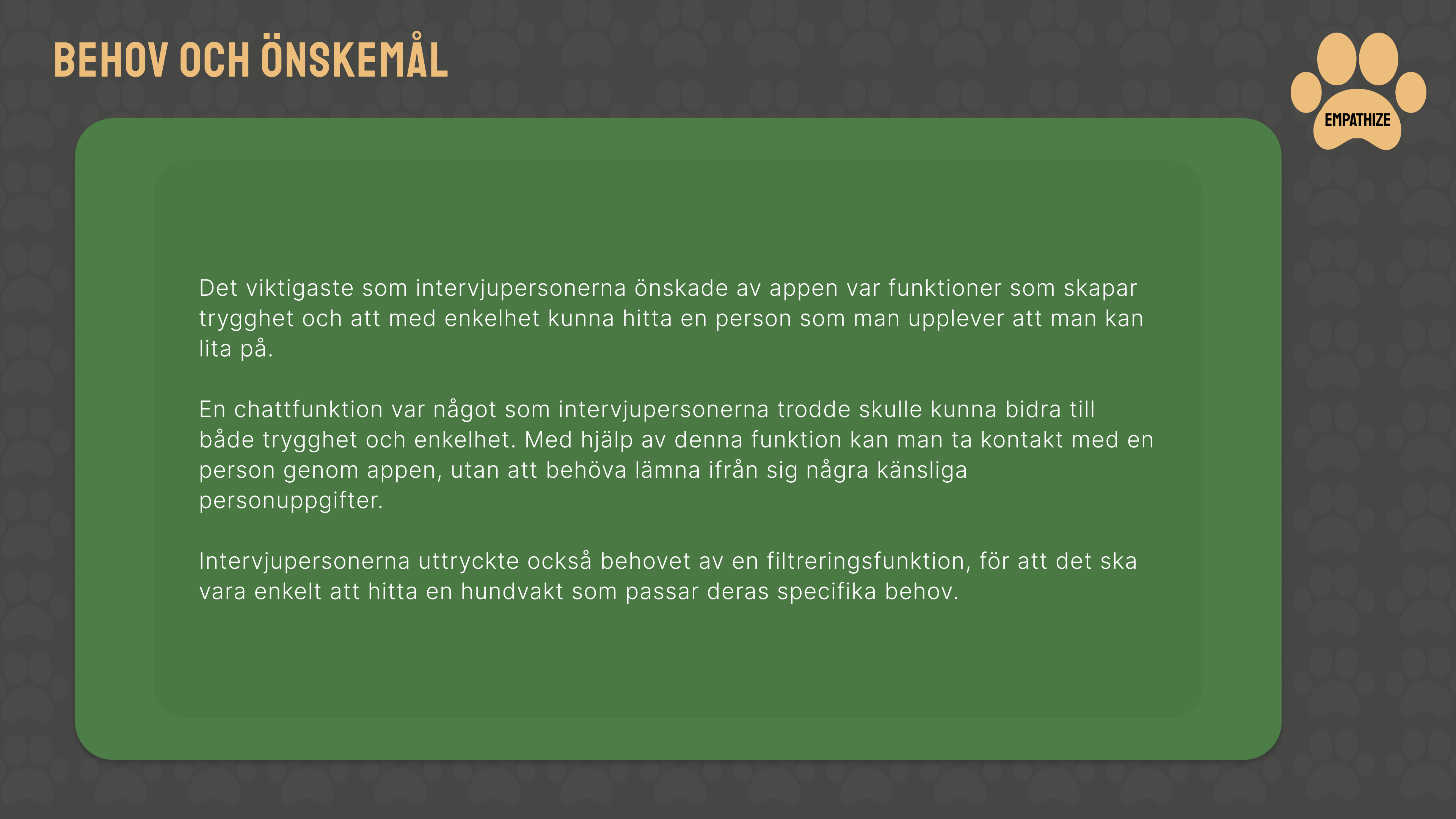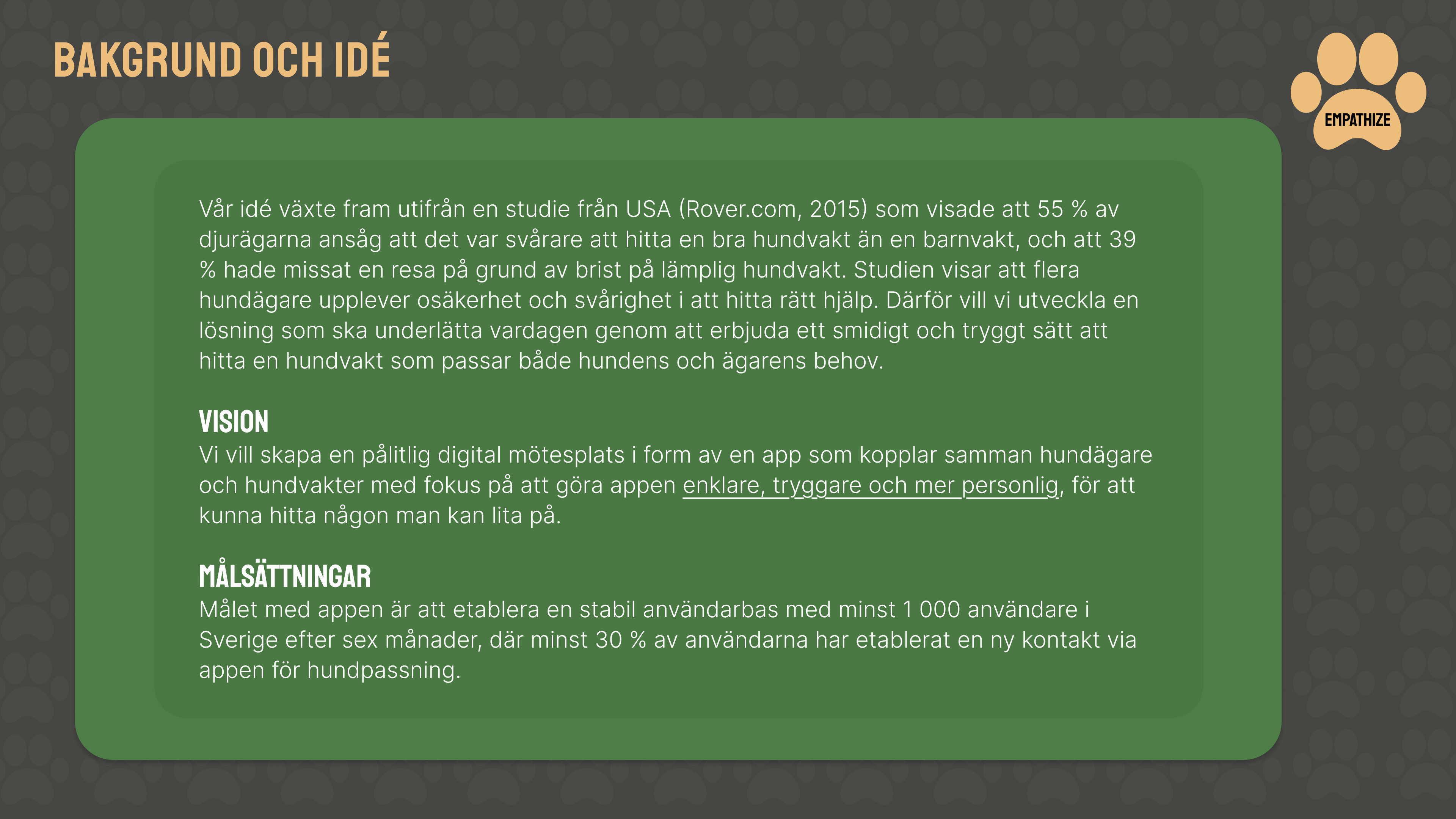 Bakgrunden var att många hundägare upplever osäkerhet kring att hitta pålitlig hundpassning, särskilt utanför det egna nätverket.