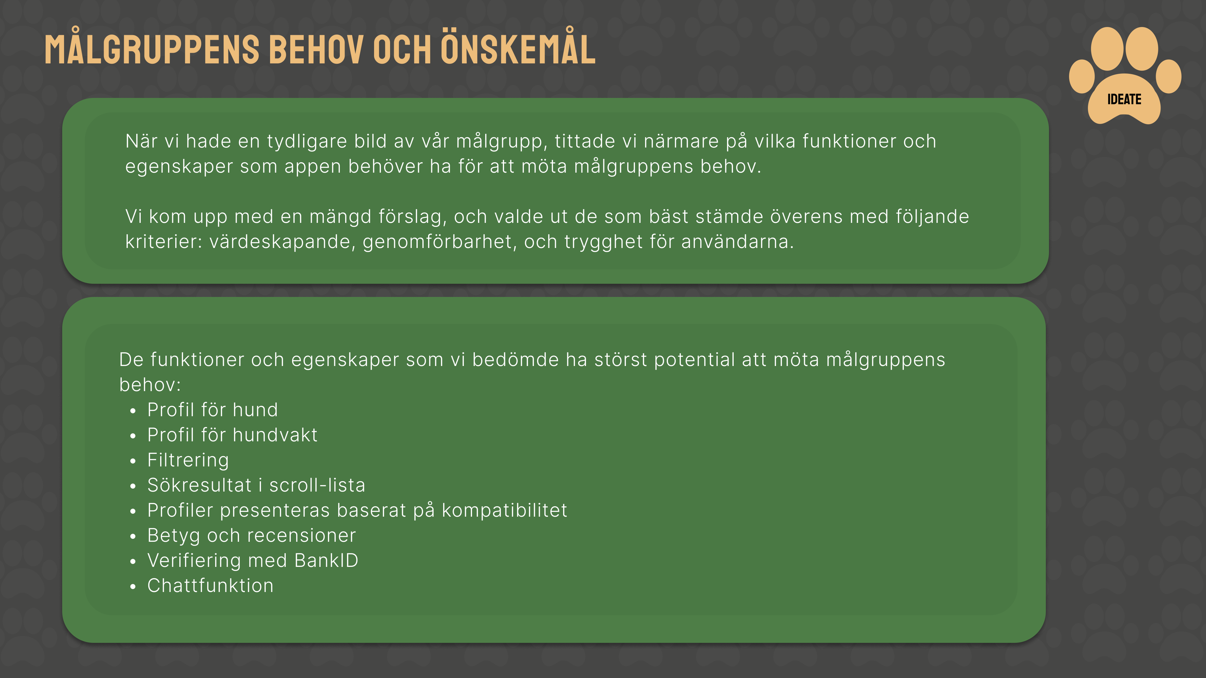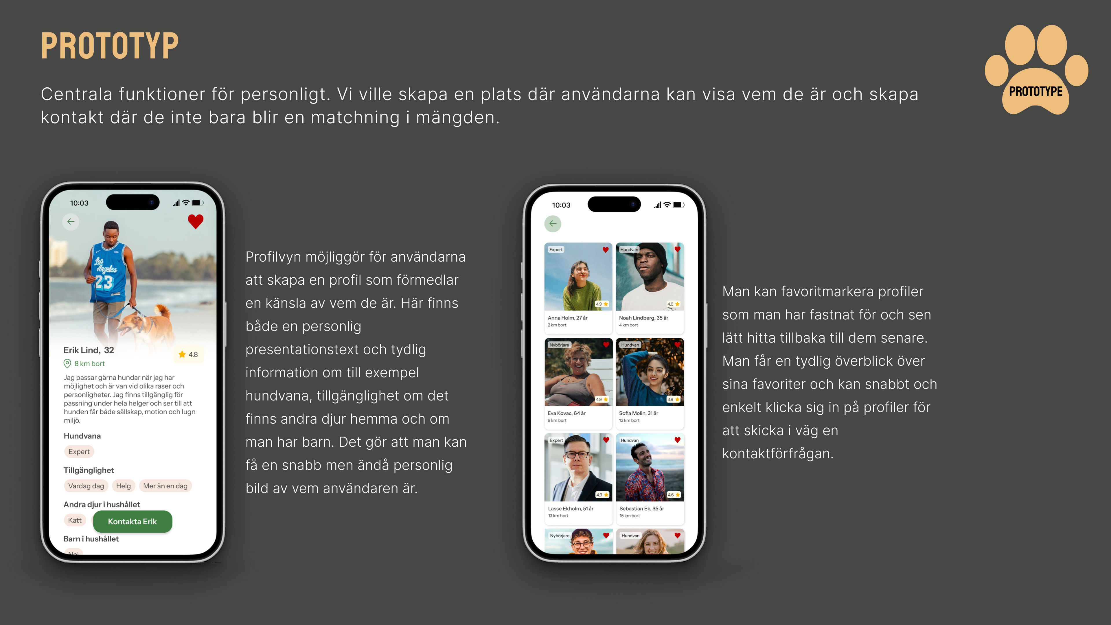 App som kopplar samman hundägare och hundvakter, fokuserar på trygghet, enkelhet och personlighet och stödjer informerade beslut.